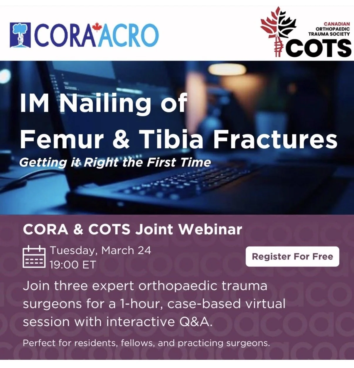 The Canadian Orthopaedic Trauma Society (COTS) is a group of Canadian Orthopaedic Association members who have banded together to perform randomized prospective multicentre trauma research studies.